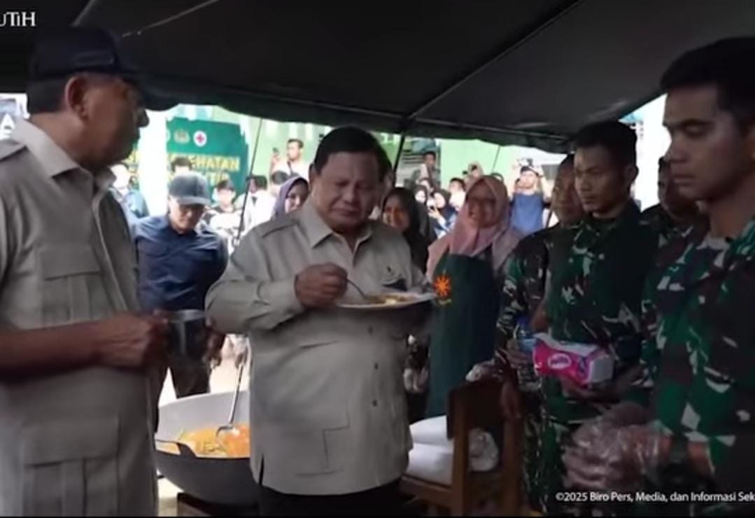 👑Mahkotariau.com – Sumbar: Di tengah kunjungan kerja yang padat untuk meninjau penanganan bencana banjir bandang di Kabupaten Agam, Presiden Prabowo Subianto menyuguhkan pemandangan yang tak biasa dan menyejukkan hati. Bukan di meja perjamuan resmi, Kepala Negara justru terlihat menikmati sepiring nasi goreng telor ceplok, di dapur umum posko pengungsian di SD 05 Kayu Pasak Palembayan, Kabupaten Agam, Sumatera Barat, pada Kamis, 18 Desember 2025.